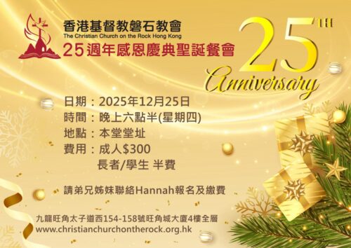 弟兄姊妹請留意本堂 WhatsApp 群組 有關教會最新知訊和代禱消息。 最 新 佈 道 聚 會 特 別 聚 會 最 新 教 會 活 動 2025年12月 25 週年感恩慶典聖誕餐會 2024年12月 平安夜 佳音夜 2024年9月 中秋節愛筵 2024年3月 教會同樂日 2024年3月 Good Friday 受難日默想聚會